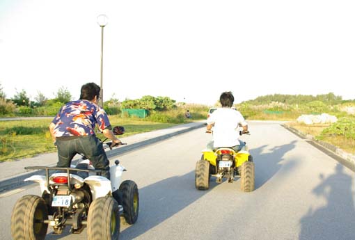 結婚式終わりでツアーの特典のバギーに乗る画。