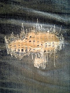 穴があいてたので、裏から別の生地を当ててギザギザに縫う。