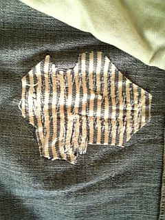 デニムの横糸がまだ健在なので裏から当てた生地が見えないけど、ヒッコリーです。