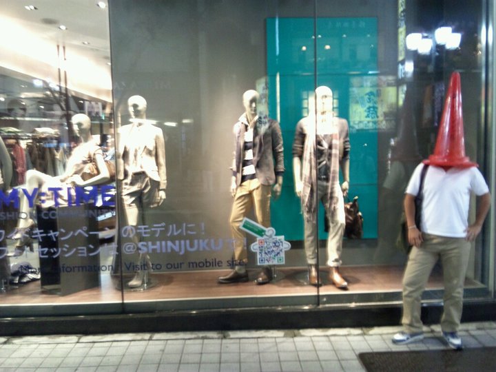 なんのことはなくて、道にあったコーンを頭にかぶって