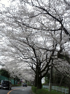 道路の両脇に桜がトンネルのように咲いてて、それが1㌔ぐらいある。