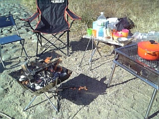 多摩川の河川敷で焚き火です。