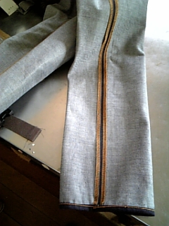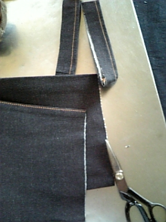 生デニムなので洗いで縮む分と縫い代を計算して裁断。