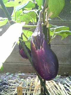 ナスは実が4つ付いてて、1つはもう収穫できそう。