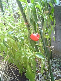今朝、畑に水をやりに行ったら、フルーツトマトの実が