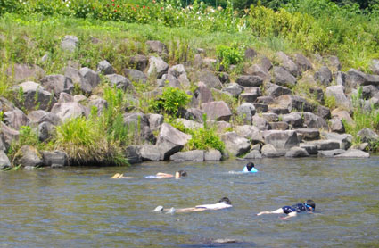 ミズデッポーズでまたまた秋川上流へ泳ぎに行く。