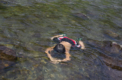 チビデッポーズ最年長(6歳)はカエルのように漂う。