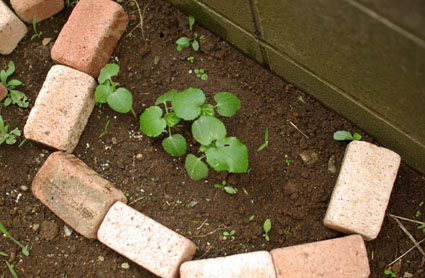 2代目オクラは畑のやつよりこの何にもしてない地面に植えてた