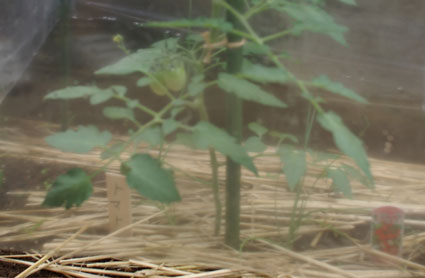 トマトのテントのせいで日の当たりが悪いのかなー。