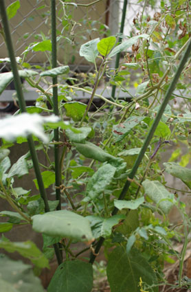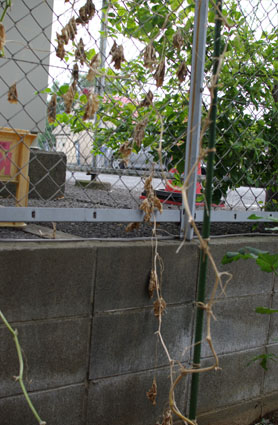 トマトはすげぇ少しだけ実がついてるけど枯れ気味。
